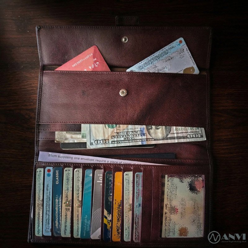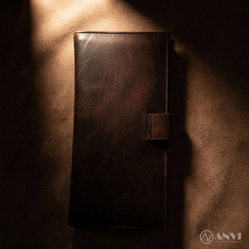 Finished with a secure snap button closure, this wallet keeps your cards, cash, passports, and documents safe and organized—an ideal companion for travel.